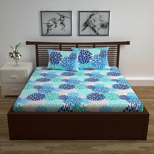 Divine Casa 144 TC Super Soft 100% Cotton Bedsheet for Double Bed 144 Thread Count Floral Colour Blue Aqua