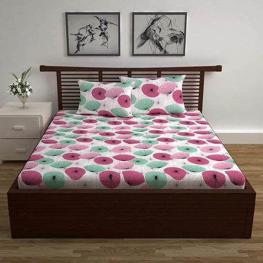 Divine Casa 144 TC Super Soft 100% Cotton Bedsheet for Double Bed 144 Thread Count Floral Colour Rose Pink