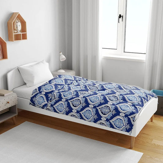 Divine Casa Floret 100% Cotton Single Kids Dohar 120 GSM Soft & Lightweight Throw Blanket Colour Dazzling Blue