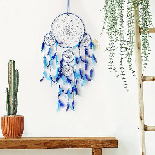 Dream Catcher Traditional Indian Dreamcatcher Wall Art Orange-Blue 5Ring