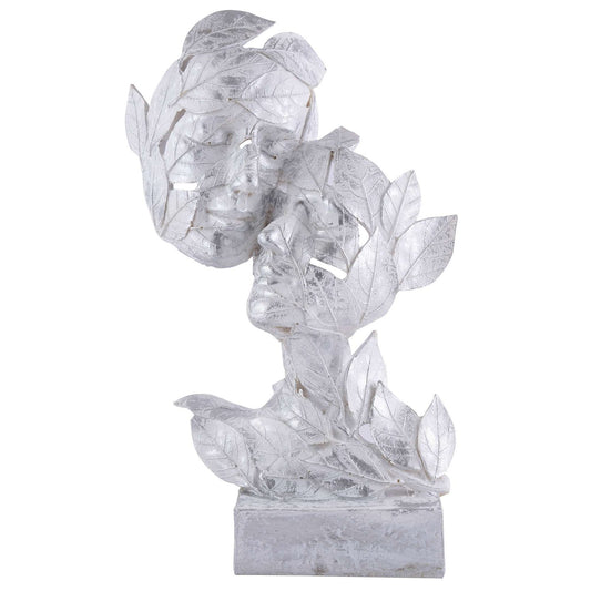 Dual Human Face Statue with Botanical Detail Contemporary Art Figurine