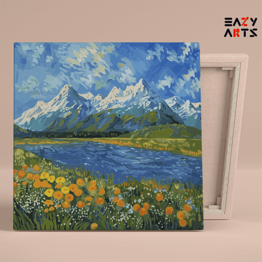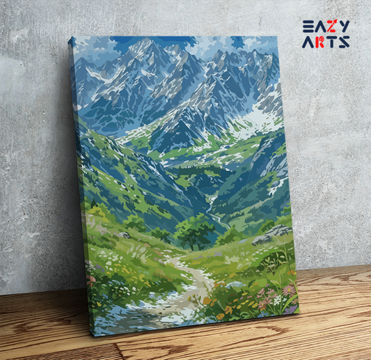 Eazy Arts Alpine Vista: Majestic Mountains and Meadows Paint by Numbers Kit