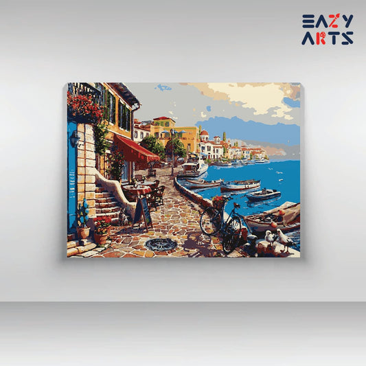 Eazy Arts City Beach Boats and Mountains Paint By Numbers kit