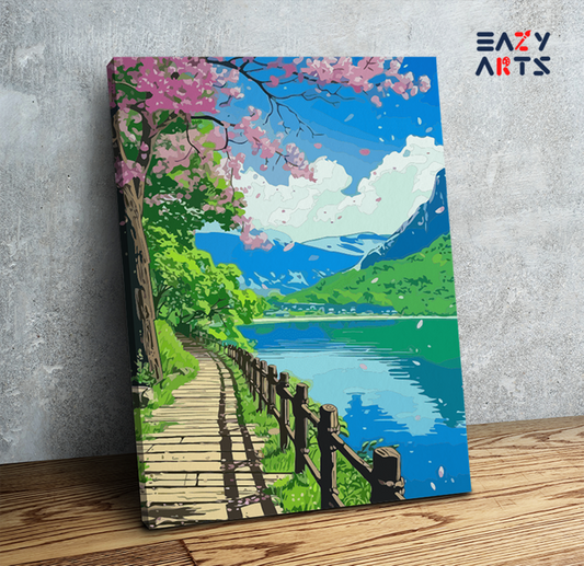 Eazy Arts Cherry Blossom Lakeside Path Paint by Numbers Kit