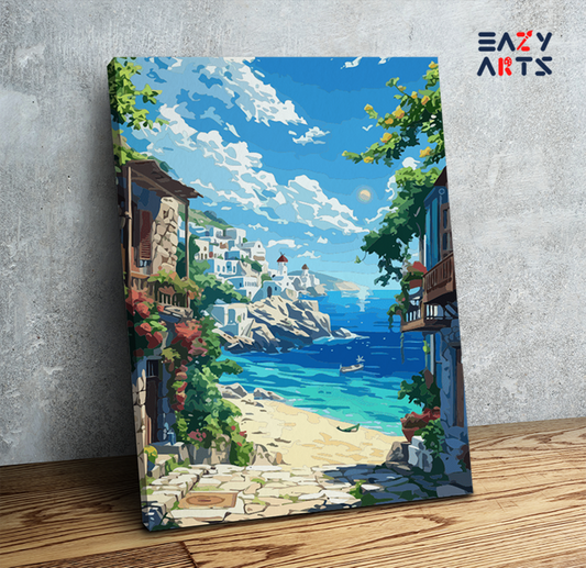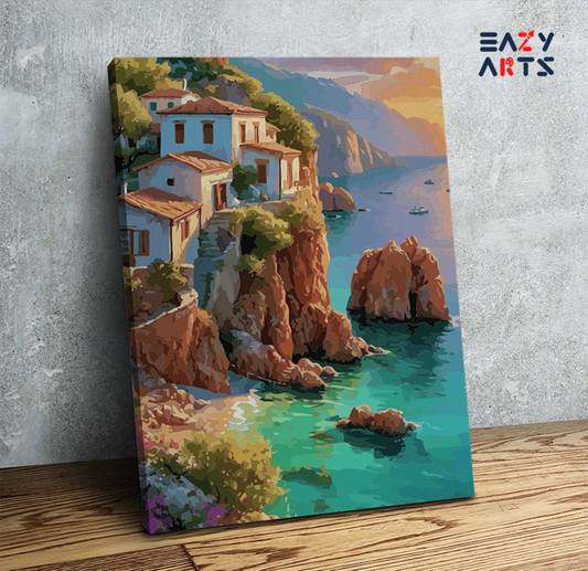 Eazy Arts Cliffside Mediterranean Village Paint by Numbers Kit