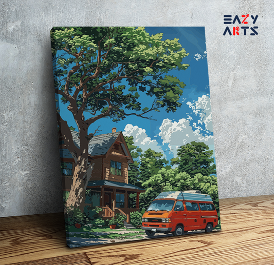 Eazy Arts Cozy Cabin with Camper Van Paint by Numbers Kit