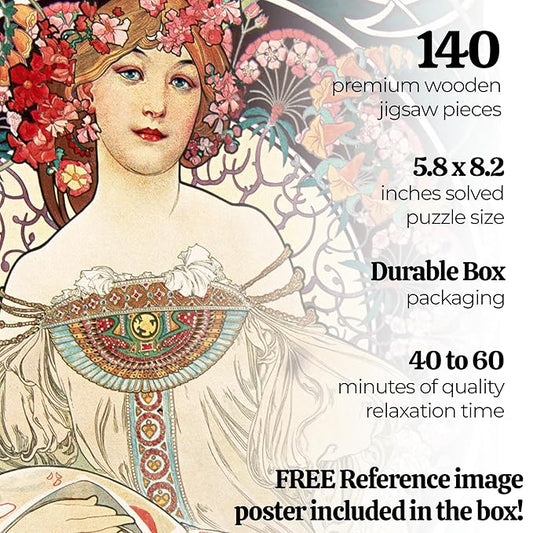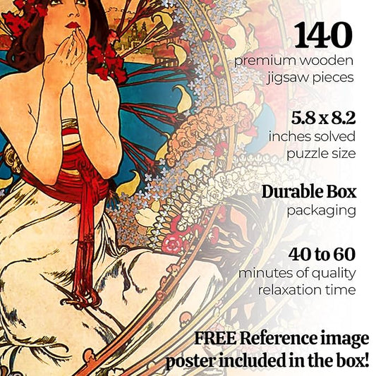 91knots - F. Champenois Imprimeur-editeur 140 Pieces Wooden Jigsaw Puzzle for Adults and Kids 5+ Years | Alphonse Maria Mucha 's Artwork