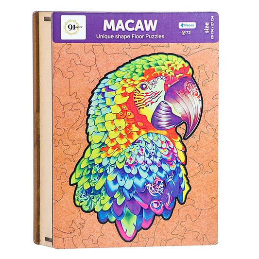 91knots Macaw 72 Pieces Wooden Jigsaw Puzzle for Kids & Children | Animal Shape Macaw Bird Puzzle for 6 Year Old Kids