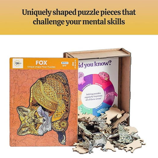 91knots Fox 55 Pieces Wooden Puzzles for Kids | Jigsaw Puzzle for Kids Board Games for Kids | Animal Shapes Puzzle for Age 5+ Kids