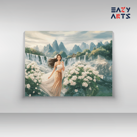 Eazy Arts Enchanting Mountain Waterfall with Flower Garden Paint by Numbers Kit