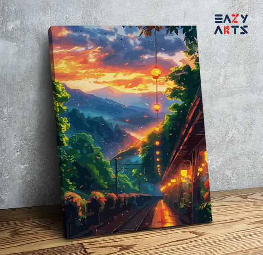 Eazy Arts Evening Lantern Railway Paint by Numbers Kit