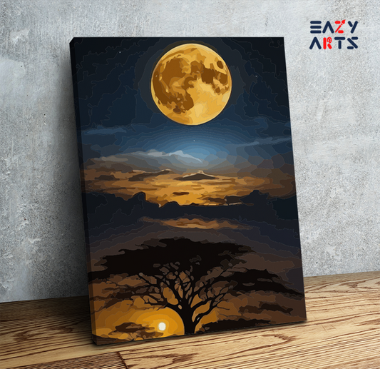 Eazy Arts Full Moon Over African Tree Paint by Numbers Kit