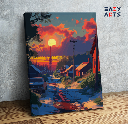 Eazy Arts Fiery Sunset Village Paint by Numbers Kit