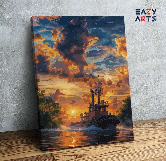 Eazy Arts Fiery Sunset Tugboat Paint by Numbers Kit