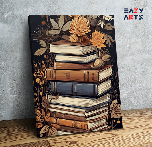 Eazy Arts Floral Vintage Books Paint by Numbers Kit