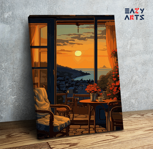 Eazy Arts Golden Sunset View: Balcony and Horizon Paint by Numbers Kit
