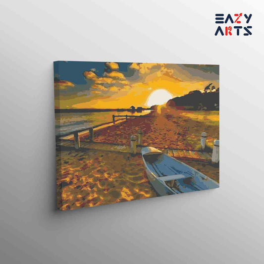 Eazy Arts Lakshadweep sunset beach and boat paint by numbers kit