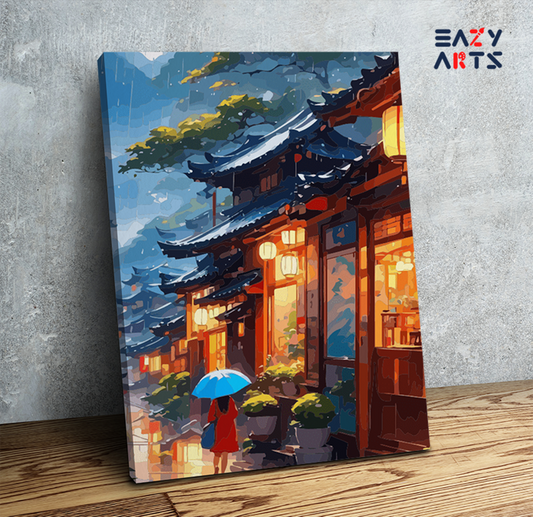 Eazy Arts Rainy Lantern Street Paint by Numbers Kit