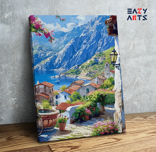 Eazy Arts Seaside Mediterranean Village Landscape Paint by Numbers Kit