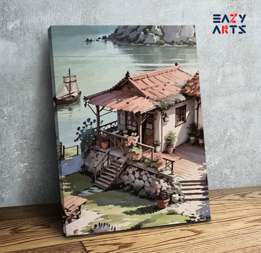 Eazy Arts Serene Lakeside Village Paint by Numbers Kit