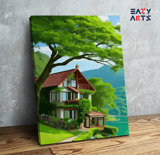 Eazy Arts Serene Lakeside Cottage Nature Paint by Numbers Kit