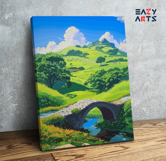 Eazy Arts Serenity in the Hills: Bridge and Meadows Paint by Numbers Kit