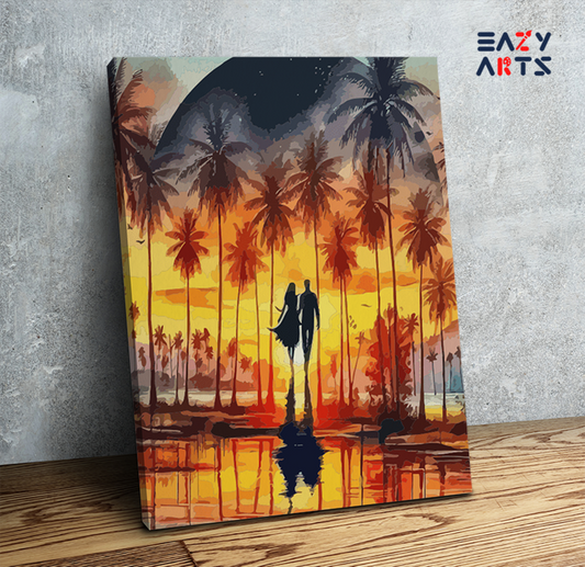 Eazy Arts Sunset Romance: Couple in Paradise Paint by Numbers Kit