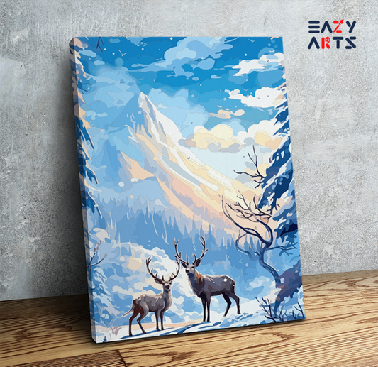 Eazy Arts Winter Forest Deer Scene Paint by Numbers Kit