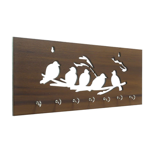 Ecraftindia Brown Birds Sitting on Branches Theme Wooden Key Holder With 7 Hooks