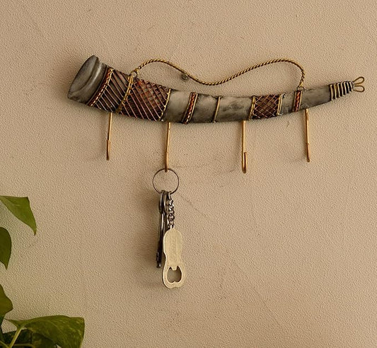 Ecraftindia Long Shehnai Wrought Iron Key Holder | Red and Brown