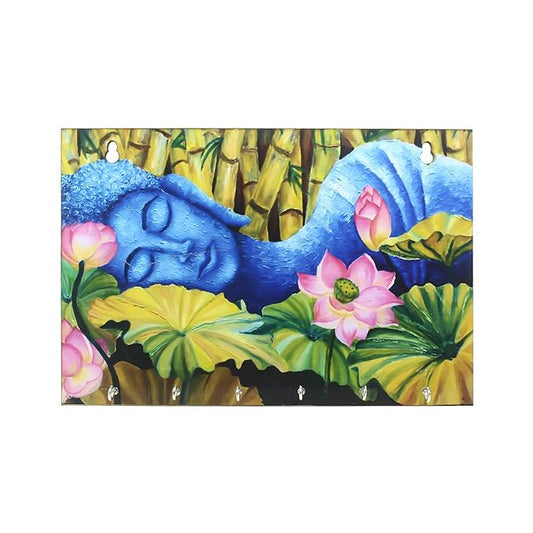 Ecraftindia Lord Buddha Theme Wooden Key Holder With 6 Hooks