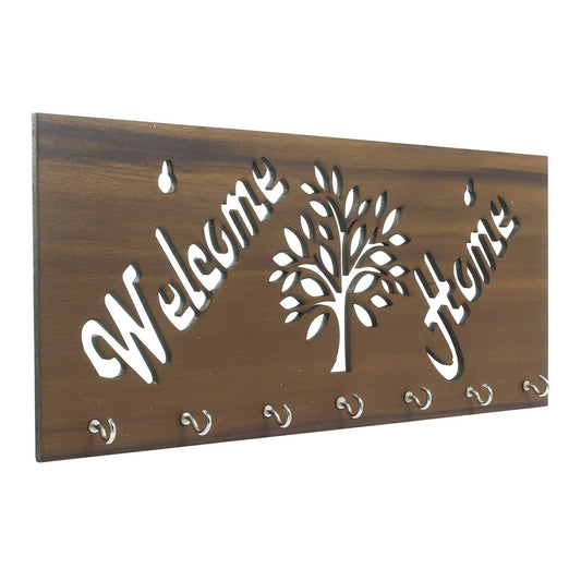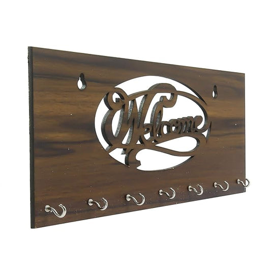 Ecraftindia Welcome Theme Wooden Key Holder With 7 Hooks