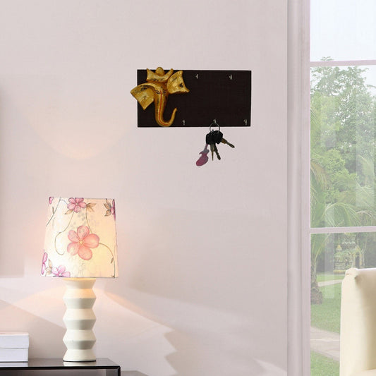 Ecraftindia Wooden Lord Ganesha Key Holder | Golden and Brown