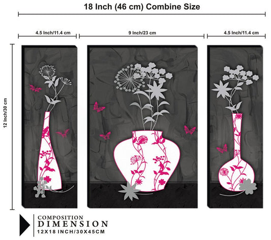 Elegant Maroon & Lilac Vase Art Set of 3 Modern Wall Panels