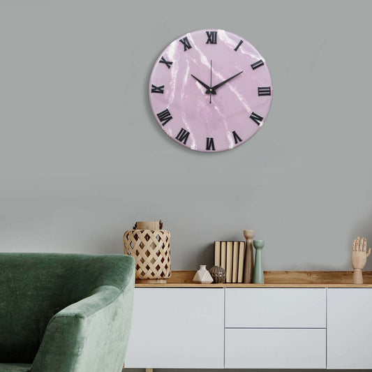 Exquisite Wooden Handmade Wall Clock Pink With White Printed Acrylic Wall Clock for Home (16 Inch)