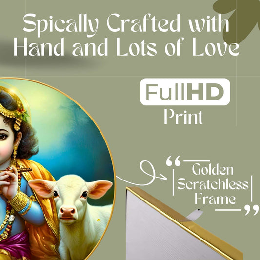 Flute Playing Baby Krishna Canvas Krishna & Cow Wall Decor Spiritual Wall Accent for All Rooms