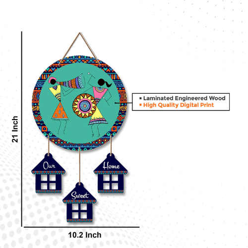Folk Art Inspired Welcome Hanging Circular Wall Piece with Tribal Dancers and Our Sweet Home