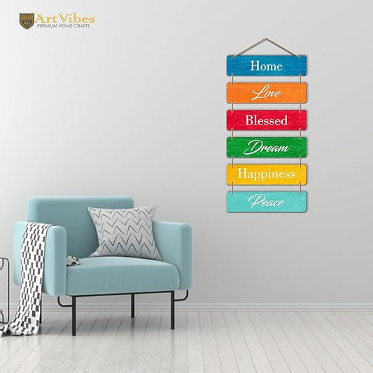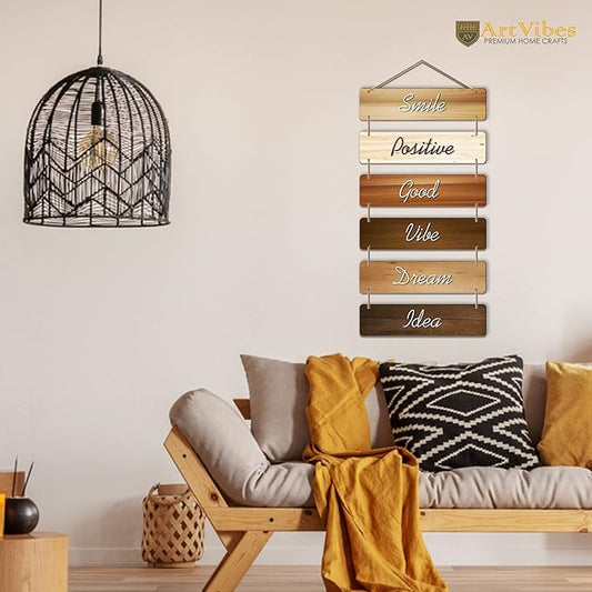 Artvibes Decorative Wall Hanging Wooden Art Decoration Item for Living Room | Quotes Decor Item | Wall Art for Hall | Set of 6