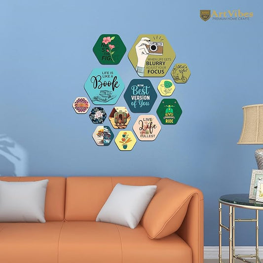 Artvibes Decorative Wall Hanging Wooden Art Decoration Item for Home Decor | Quotes Decor Item | Mdf Wall Decoration | Set of 6