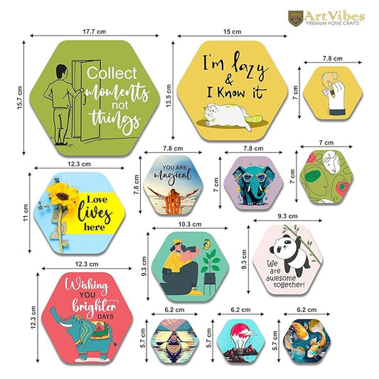 Artvibes Decorative Wooden Wall Hanging Decoration for Home | Quote Decor Item | Pack of 13 Pieces