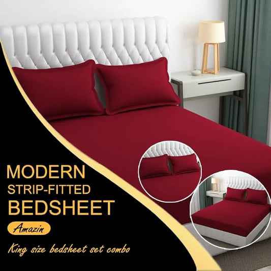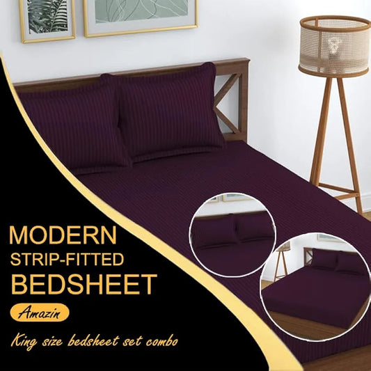Fresh From Loom 240 TC Satin Striped Elastic Fitted Bed Sheets King Size Bed with Two Pillow Cover Wine