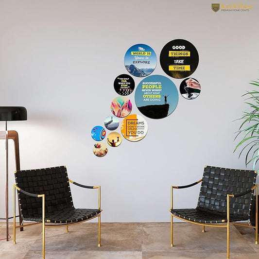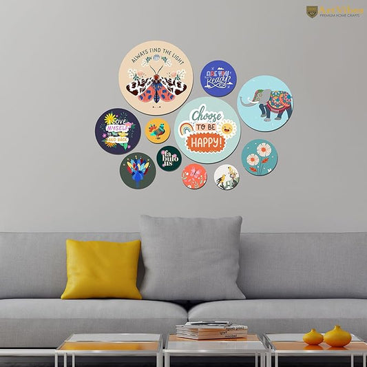Artvibes Decorative Wooden Wall Hanging Decoration Item for Home | Wall Artworks Items | Quotes Decor Item | Pack of 11 Pieces