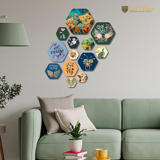 Artvibes Designer Mdf Wooden Wall Hanging for Home Decoration | Pack of 11 Pieces