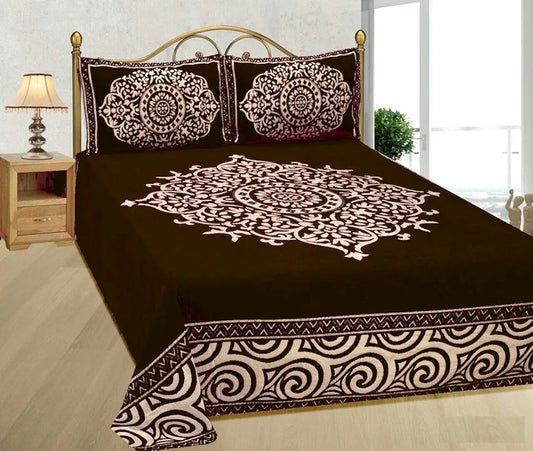 Fresh From Loom Chenille Velvet Floral 500 TC Heavy Bedsheet for Double Bed King Coffee Color with 2 Pillow Covers Ambi Brown
