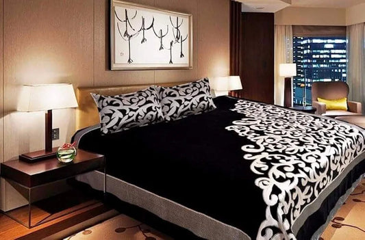 Fresh From Loom Chenille Velvet Abstract 500 TC Heavy Bedsheet for Double Bed King Size Black Color with 2 Pillow Covers