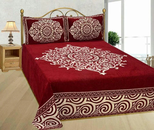 Fresh From Loom Chenille Velvet Floral 500 TC Heavy Bedsheet for Double Bed King Maroon Color with 2 Pillow Covers Rangoli Maroon