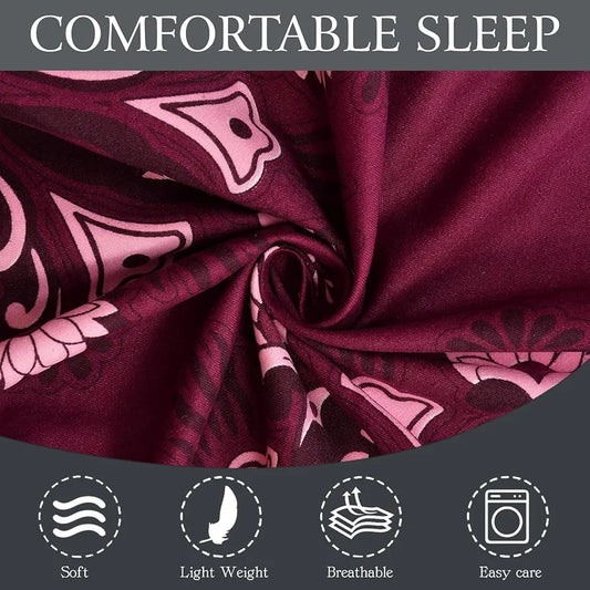 Fresh From Loom Floral King Size Microfiber Bedsheet Set Printed Hypoallergenic Wrinkle Free with 2 Pillow Covers 144 TC Wine