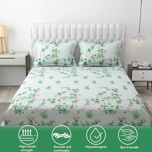 Fresh From Loom Floral King Size Bedsheet Microfiber Rotary Printed with 2 Pillow Covers Multicolor