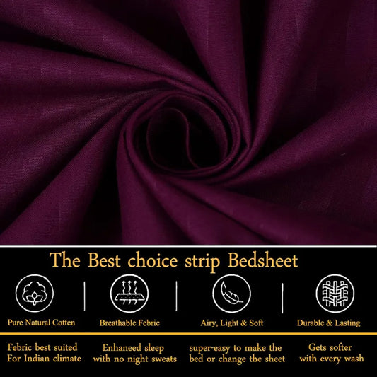 Fresh From Loom Reversible Cotton Bed Sheet Set Single Bedsheet 300 TC Bedsheet with 1 Pillow Covers Wine