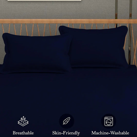 Fresh From Loom Queen Size Flat Bedsheets Hotel & Home Double Bedsheet Set with 2 Pillow Covers Navy Blue
